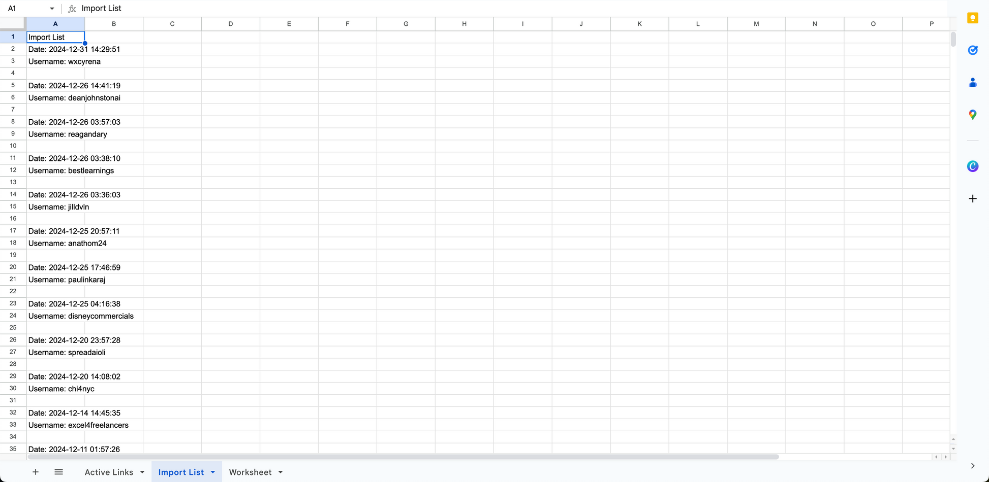 All you need to do is request your data from TikTok and import it into this spreadsheet. Once you do that, you'll be able to find their username for IG and Youtube. If you want to add additional domains to check with different platforms, you can do that too!